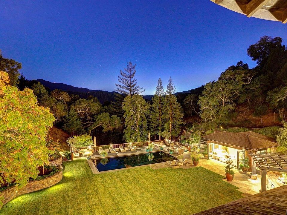Through pillared gates and past a gracious, private driveway lined with stone walls rests one of Ross’ most distinguished estates. The stunning, resort-like setting offers 5+- acres of private and landscaped grounds, including a sprawling level lawn, an expansive garden, an in-ground dark-bottom pool, a wood-burning fireplace and a fully-equipped outdoor kitchen. Completed in 2006, this newer construction residence is a shining example of flawless, high-quality construction with superior finishes and craftsmanship throughout. With 8,000+/- square feet of living space, 8 bedrooms and 7 ½ bathrooms plus a detached pool house, this magnificent home provides a wonderful family floor plan as well as inviting, indoor and outdoor entertaining spaces. This rare, sought-after setting combines the complete privacy of a gated estate with the convenience of being just minutes away from Downtown Ross, the distinguished Ross School, world-class hiking and biking trails, Phoenix Lake and so much more. The entertainer’s dream property + 5+- acres + Beautiful views of Mt. Tamalpais + Sweeping level lawn + In-ground dark-bottom pool with automatic safety cover + Built-in spa + Large sunning deck + Bluestone tile + Outdoor kitchen and dining area + Pool house with full bathroom, sauna, kitchenette and bi-folding doors + Outdoor wood-burning fireplace + Immaculate garden with stone planters + Private well for irrigation + Heirloom apple trees + Nectarine, apricot, peach plum, pear and lemon trees + Vegetables include squash, basil, peppers and kale + Five-star chicken coop + 2+ car attached garage + Gated estate with gracious driveway + 8,000+- square feet + 8 bedrooms + 7 ½ bathrooms + Completed in 2006 + High-end construction + Extremely private + High and vaulted ceilings throughout + Stunning chef’s kitchen open to family room + Huge center island + Portuguese limestone countertops + Walk-in pantry + Butler’s pantry with storage, wine refrigerator and prep sink + Beautiful hardwood floors + Mud room with built-ins + Family room with media built-ins + Surround sound + Built-in speakers + Charming office/library + Exquisite Master Suite + Adjoining walk-in closets with built-ins + 5 wood-burning fireplaces + Expansive covered balcony with overhead outdoor heaters + Media room and adjoining rec room perfect for home office/playroom/rec room + Private guest suite + Separate au-pair suite + Large laundry room with built-in storage + Sunny southwestern exposure + Great proximity to Downtown Ross, the distinguished Ross School, world-class hiking and biking trails, Phoenix Lake and so much more.