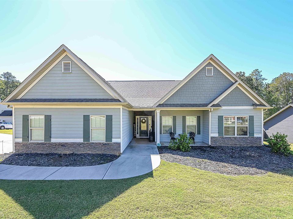 Wonderful stepless entry ranch home features 3BR/2BA with so many upgrades. Wide entry foyer invites you to the open great room that has a stacked stone fireplace w/gas logs and electric starter. Spacious eat-in kitchens has popular espresso cabinetry, granite counter tops, tile backsplash, enlarged double door pantry with view to dining and great room that is perfect for entertaining for the up coming holidays. Nice size laundry room has additional shelving for storage. A spacious owners retreat with sitting area and master bath has tiled shower, separate soaking tub, double vanity w/granite countertops and a large walk in closet. Covered rear patio, side entry garage w/opener, charming front porch on a large corner lot all make this a great find for someone looking for a low maintenance home in a great location. Small quite subdivision with NO HOA is a plus!!