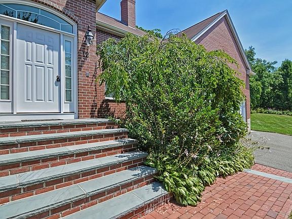 Custom Built Ranch offering one level living and beautiful finishes throughout. This home offers an open floor plan with high ceilings, a Living Room with a fireplace, Dining Room with French Doors to a beautiful Blue Stone Patio and a Custom Kitchen with rich cabinetry, granite counters stainless appliances & a center island w/seating. The Master Bedroom is spacious with a vaulted ceiling & walk in closet. The Master Bath boasts a jetted tub, separate shower, and a granite topped vanity w/double sinks. Bedrooms 2 and 3 are pristine and offers double closets. The main Bath has a double sink vanity & tile flooring. There is a Mudroom hallway off the garage that offers a half Bath, separate Laundry Area and storage closet. There are beautiful rich wood & tile floors throughout the home. The private yard offers a large garden area & storage shed. The Garage is 3 car w/one side being tandem. Central Air, Well for Irrigation, Newer boiler & HW Heater - move right in to this meticulous home.