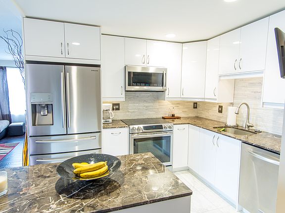 Beautiful, newly updated, 2 bedroom, 2 full bath condo, with sweeping panoramic views of Boston sky line and Atlantic Ocean. The balcony overlooks Nahant and Swampscott beaches. Completely renovated, this spacious condo features an open floor plan, dark hardwood floors, open kitchen with marble floors and counter tops, energy-efficient stainless steel appliances, in unit washer/dryer and custom made closets. The unit comes with one deeded parking spot (with more available in the guest lot) and 2 big storage units.