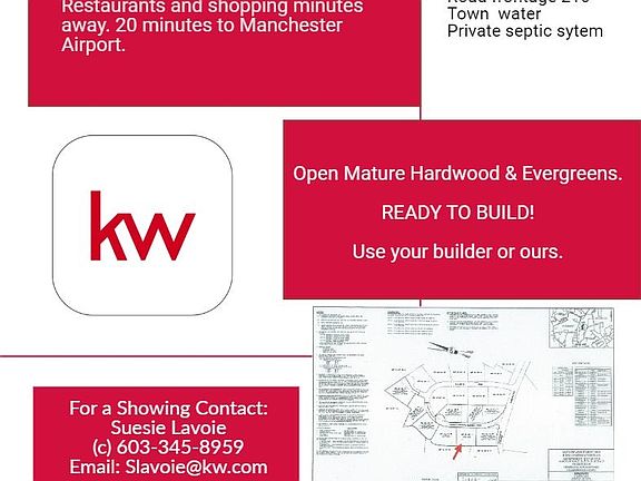 PRIME LOCATION! Minutes from 101A & Rte 3 Everette Turnpike. Restaurants and shopping minutes away. 20 minutes to Manchester Airport Open lot with mature hardwoods and evergreens for privacy. READY TO BUILD! Use your builder or ours. Agent interest.