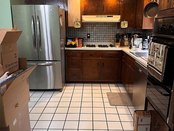 Room to Grow and Make It Your Own, This 4-bedroom, 2.5-bath high ranch offers abundant space and a layout perfect for modern living. Large eat in kitchen with mostly stainless steel appliances, formal dining room, sliders to a deck , wood banister, and hardwood floors upstairs ! The home does need updating and maintenance but provides a fantastic opportunity to create a home tailored to your style. A wonderful chance to invest in a property with strong potential. Level yard and a newly paved roadway, central air and a full size laundry room, 1 car garage - Opportunity knocks to restore this diamond in the rough back to its natural beauty!