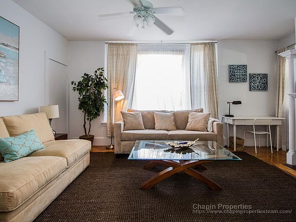 FURNISHED RENTAL, SHORT OR LONG-TERM, UTILITIES INCLUDED A sunny, spacious fully furnished one-bedroom apartment situated on the first floor of a Victorian home. This unit offers a private entrance as well as a large private porch with a bistro table perfect for morning coffee, evening meals or just enjoying the hilltop breeze. This airy apartment situated on a quiet tree-lined street hosts traditional Victorian features: hardwood floors, high ceilings, and an ornamental fireplace as well as modern amenities: a large living room with flat screen smart TV, sleeper sofa, workspace, and dining area. A comfy queen bed and flat-screen TV adorn the en suite bedroom, and the kitchen comes fully equipped. For your convenience, there is coin-operated laundry and on-site parking available ($15/night). Pets considered, please inquire directly. This neighborhood is just steps to restaurants, shops, and public transportation (MBTA Green Line B, C & D trains) with easy commute to downtown Boston, Longwood Medical area, Boston College, Boston University, St. Elizabeth s, and all of Boston s tourist attractions.