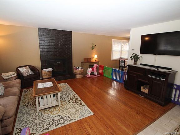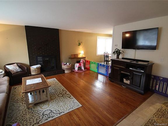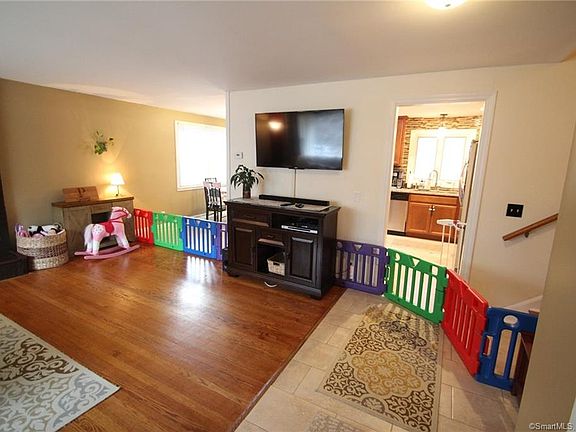 Very nice split level, featuring close to 1700 sq.ft of living space offering 3 bedrooms, 2 full baths and one car garage attached. Remodeled kitchen, granite counters, new back-splash and stainless and tile floors. wood floors throughout, fireplace in great room area . Lots of closet space, good size bedrooms. There are two areas just a few steps down which consist in a large room that can be a perfect office or a guest bedroom, accessible to full bathroom and laundry, and a few steps lower another large room with tile floors ideal for a rec-room, play area, media room or just storage. This home is just seconds to exit 67 for great commuting to Hartford, shopping and malls and located in a neighborhood setting, surrounded by well kept homes. Recent improvements: partial new roof, newer hot water heater, newer electrical service wire and panel. Yearly maintained heating system. Neutral colors all around. Large side yard for gardening, playscape, and possible pool area if needed. Come and visit, it will be a pleasure show., please give 24 hr notice or all showings