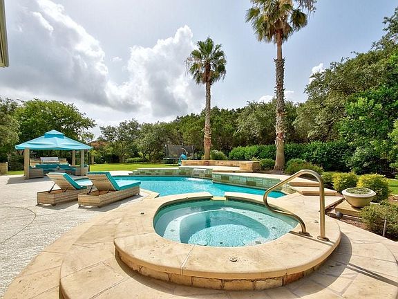 Beautiful estate home on highly desirable Club Estates Pkwy in the exclusive gated neighborhood, The Hills. Home sits on nearly an acre, very private, treed lot w/ pool & hot tub. Remodeled kitchen features marble countertops, double ovens, wine fridge, ice maker & white cabinets. Main home includes 5 bedrooms, plus office, billiard/dining room and game room. 6th bedroom is a private guest suite over garage with separate entrance.
