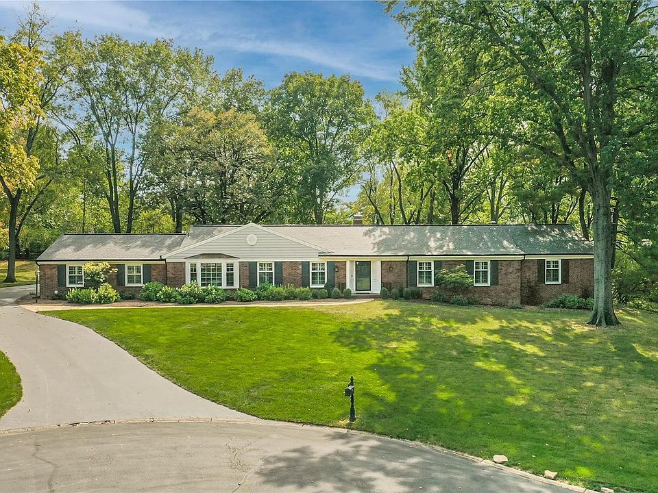 This renovated, expansive ranch home sits gracefully on a peaceful Frontenac cul-de-sac. Recently Renovated, this sprawling ranch offers sophisticated, single level living on a spacious 1.19 acre lot. Graceful, large rooms provide entertaining spaces that flow seamlessly with Hardwood floors. Living room & sun drenched oversized dining room, are masterfully separated by glass doors proving versatile areas. Eat-in Kitchen has newer appliances, custom cabinets & Cambria counters. Enjoy mornings with your own Coffee bar overlooking your lovely patio complete with fire table & fountain. Family room has nice built ins & amazing back yard views. Home features five bedrooms and 3.5 baths. Two large bedrooms with private En-suites. Three additional bedrooms are large & share the renovated full hall bath. 1st floor laundry & locker area are perfectly placed by exterior door & garage. Large basement provides fun game/entertaining area & storage. Oversized 2 car garage in this parklike setting.