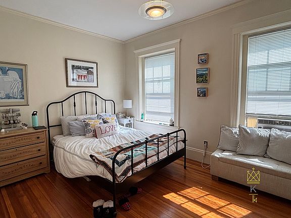 A true gem on one of Brookline's most charming residential streets, a short distance from Washington Square. Sun-filled and spacious living room and separate dining room with decorative fireplace, built in bookshelves, and charming woodworking details. Two large bedrooms with great closet space. Eat in kitchen with a dishwasher and in unit laundry Plus a large private deck off the kitchen. Heat and hot water included. No pets please. Parking for rent at $200/month per spot. Available 9/1.
