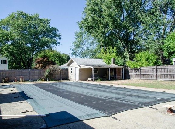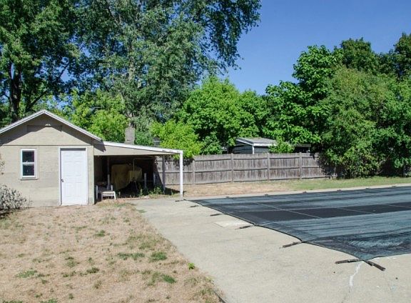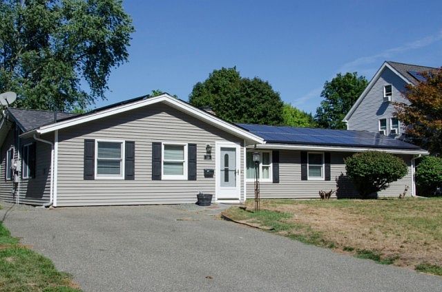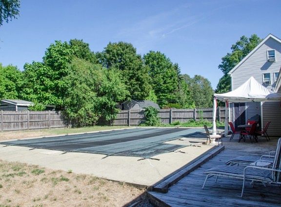 Settled in the Raymond Farms area this spacious Ranch is filled with natural light, Wrap-around wood burning fireplace, wall to wall walk-in closet, relaxing fenced in backyard with in ground swimming pool, pool house w/ 1/2 bath and storage shed. Many updates and upgrades to include windows, siding, roofing hardwood floors and the addition of a bedroom in 2005. Large and bright eat-in kitchen with granite countertops, ceramic tile (2015) island, newer appliances to include SS Fridge, countertop stove, Bosch wall oven. Fully insulated , central air, heated by forced air electric with active solar panels installed in 2013. Pressure treated porch (length of the house) with drainage stone underneath.