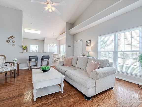 Welcome home! Don't miss out on this pristine end unit townhome overlooking the lagoon in the desirable Berwick Community! Located in the quiet neighborhood of Stonelake Townhomes, this immaculate home features a split floorplan with 2 bedrooms and 2 bathrooms. As you walk in, you are met with an open floor plan that includes soaring ceilings and tons of natural light. The kitchen is equipped with stainless steel appliances, a dining area, breakfast bar, pantry, and beautiful new floors. Your spacious primary suite includes a large walkin closet, double vanity, linen closet, and brand new walk in shower. Drink your morning coffee or relax at the end of the day on the brand new screened in porch overlooking the peaceful lagoon and fountain. Other great features include a large laundry room, new windows, new water heater, new floors in both bathrooms, gutters, custom Savannah blinds, and fresh paint. New washer and dryer stays with the home! The neighborhood amenities include a pool, playground, and clubhouse. Location is key! You're in walking distance to Kroger, Starbucks, restaurants, and shopping. It's central location gives you easy access to Richmond Hill, downtown Savannah, middle Savannah, and I95.