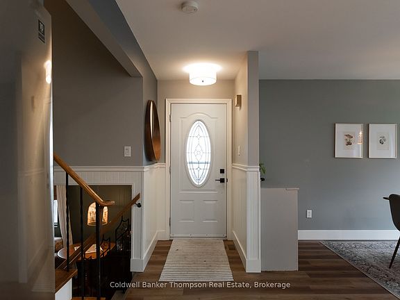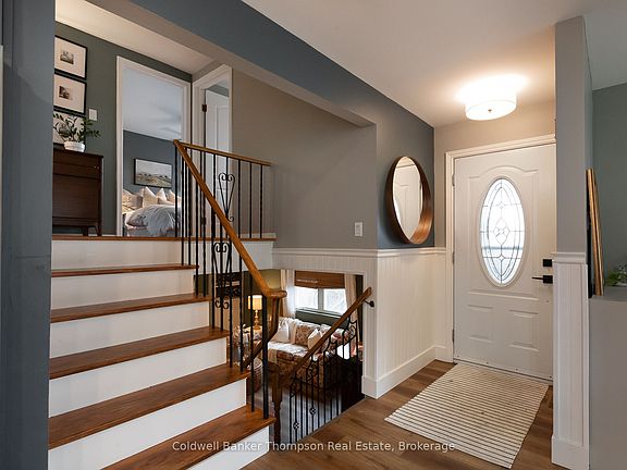 This delightful in-town back split offers a wonderful blend of comfort, style & convenience. Thoughtfully updated throughout, it's a home that welcomes you from the moment you arrive. The covered entry, sheltered by the carport, leads into a bright open-concept main floor that's perfect for everyday living & entertaining. The spacious kitchen features a huge island with extra seating, abundant cabinetry, and generous counter space for meal prep. Whether hosting friends or enjoying a casual meal, this space truly functions as the heart of the home. The adjoining dining area is open yet defined, ideal for family dinners or game nights. South facing front windows allow natural light to pour in, giving the entire space a warm & cheerful feel. A few steps up, you'll find three good-sized bedrooms and a 4-piece bathroom, all designed with function & flow in mind. Down a few stairs, the lower level offers a welcoming living room centered around a natural gas fireplace, perfect for cozy evenings. This level also features a spacious laundry room with a walk-out to the rear yard and a handy 2-piece powder room. The basement adds even more versatility with a generous bonus room, an ideal spot for a home gym, hobby space, playroom, or quiet office. A large utility/storage area and additional crawl space provide excellent storage solutions for seasonal items & extras. Enjoy the comfort of municipal water & sewer, natural gas furnace, central air, and fibre optic internet. Conveniently located close to town amenities, restaurants, and shops, and within walking distance to Huntsville Public School, Huntsville High School, River Mill Park, and the Summit Centre. A charming home that combines modern updates with a fantastic in-town lifestyle.