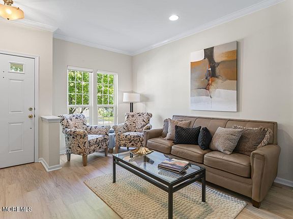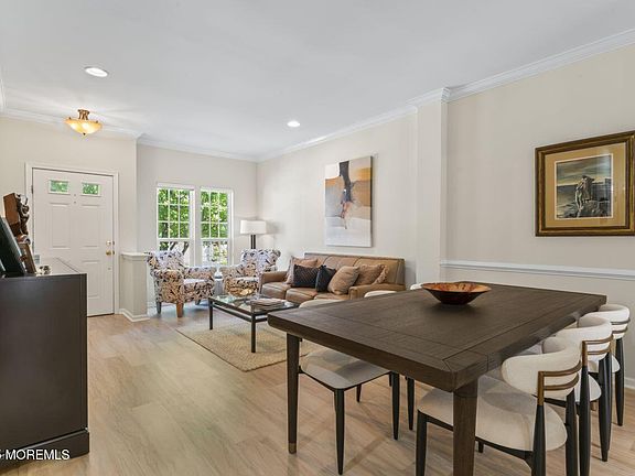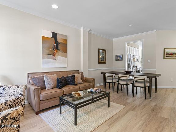 Welcome to this executive cul-de-sac of senior, 55+ townhomes. Located just  2 and a half blocks from pristine beaches. Embrace the Jersey Shore lfestyle of leisure and endless summer memories. 9ft ceilings,refined dec molding and recessed lighting greet you upon entering this beautifully appointed home. Newer LVP flooring on main level. Newer 42''kiitchen cabinets w/corian countertops, pantry and a cozy eat-in area.Sliding doors lead to  private  outdoor living space w/trex deck. Direct entry garage for easy access. Second floor laundry rm . Vaulted ceiings in primary bed rm and bath rm, jacuzzi tub, walk in shower and updated double vanity. Finished lower level w/ full bath and large storage rm. Pet friendly. Steps to Pier Village & shopping. Great access for NY commuter. Hvac, roof 2023