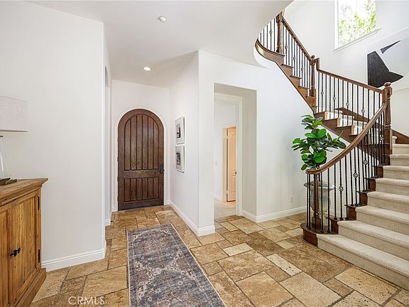 Experience contemporary chic living in this stunning villa, perfectly reflecting the tranquility of its serene setting. Situated on a large premium view lot in a quiet Talega cul-de-sac. This home has a neighbor only on one side making it completely private. With direct access to the trails, you’ll find peace of mind on tranquil walks or mountain bike rides. exclusive Cazadero home offers 5 bedrooms plus master retreat, and 4.5 baths in an open-concept design. Sunlit interiors feature custom stone, granite, and travertine surfaces, soaring 2-story ceilings, elegant archways, and a booming surround sound system featuring 8.5” speakers. The chef’s kitchen impresses with granite countertops, an oversized island with bar seating, a cozy breakfast nook, and top-of-the-line Thermador stainless steel appliances. The main floor boasts a formal dining room, a family room, a gathering room with a fireplace, a powder room, and a guest suite. Upstairs, you'll find 3 secondary bedrooms, 2 full baths, and a luxurious owner’s suite with peek-a-boo ocean views. The suite includes a soaking tub, an enormous dual head glass-enclosed shower, a huge walk-in closet with a custom organizing system, and a private balcony. The giant 10W Tesla solar system comes complete with two Tesla Power walls. significant energy savings. The home also comes with a whole home water filtration system. Step outside to an entertainer’s paradise with a courtyard, wraparound patio, 100,000 gallon salt water, pebble tech pool & spa. The pool area makes you feel like you are in a resort. BBQ island, outdoor fireplace, and panoramic valley views. The Cazadero collection boasts a prime location next to the Cristianitos Trailhead, close to Liberty Park amenities, and walking distance from Vista
