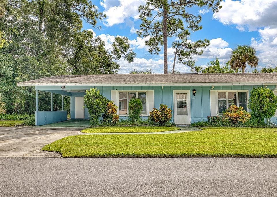 Welcome to this well-situated half duplex in the heart of beautiful New Smyrna Beach! Conveniently located near the golf course, shopping, and everyday necessities, this home combines comfort and lifestyle. Inside, you'll find spacious living areas with high ceilings, three bedrooms and two full bathrooms, plus a carport and paver back patio. The highlight is the large open kitchen with a center island, dining area, and breakfast nook, featuring beautiful wood floors that add warmth and charm. In 2012 the kitchen was updated with new cabinets and counters and the two bathrooms were remodeled with new tile and a walk-in tub was added to the primary bathroom. This lovely home has a lot of potential and is waiting for you to put your personal touch on it. As a part of this active and welcoming 55+ community, residents enjoy access to a clubhouse, pool, putting green and an active neighborhood.
