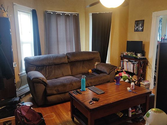 2 bed/1 bath (second floor) Eat-in-kitchen Separate living room Laundry in basement (free-use) Hardwood floors Gas heat Shared yard Private deck Off-street parking + GARAGED parking available for rent