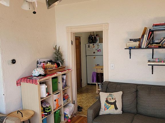 - 2 bed/1 bath (first floor) - Eat-in-kitchen - Separate living room - Hardwood floors - Laundry in the basement - 2 TANDEM off-street parking spots AND use of the left-hand GARAGE for rent - No Security Deposit. - Last Month's Rent Deposit only. - Listed by owner and owner pays rental fee. - We are Pet Friendly.
