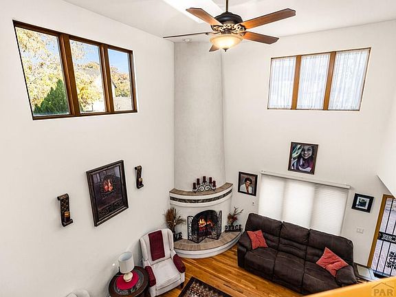 Discover the “wow” factor in this beautifully maintained all-brick townhome tucked away on a quiet cul-de-sac! These desirable Cuesta Place units rarely come available — and this one is priced to sell. Step inside to a spacious foyer area that is 11 X 8, a grand living room with vaulted ceilings, a cozy fireplace, and gleaming hardwood floors. The bright, open kitchen features abundant cabinetry, plenty of countertop space, a breakfast bar, and a charming dining area that's perfect for entertaining. All kitchen appliances stay, along with the washer and dryer for added convenience. An additional 1/2 bath, offering comfort and functionality for family or guests. Upstairs you'll find three generous bedrooms and full bathroom along with the primary 5 piece bath with jetted tub & has a walk in closet. Enjoy the private stone patio—ideal for outdoor dining, gardening, or relaxing evenings. This home shows pride of ownership throughout—clean, well cared for, and move-in ready and being sold as is. HOA is paid annually and covers exterior common area maintenance for easy living. Don't miss this rare opportunity to own a brick townhome in one of Pueblo's most sought-after locations in Belmont!