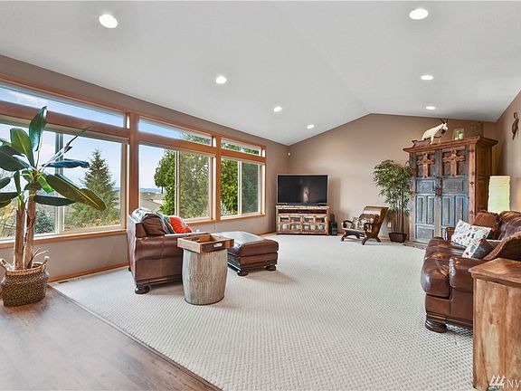 Impeccable! The pride of ownership shows in this 5 bed, 4.25 bath home with beautiful valley and city lights views! High ceilings, generous living spaces, all bedrooms w/ en-suite baths. Master up w/ attached office. Huge walk in closet with W/D. 2 beds, 1.5 baths on main. Basement offers 9.5 ft ceilings, free standing propane stove, kitchenette, 2 beds, 2 baths, and two extra finished rooms (poss 6th bed). Large patio, deck, cement board siding, 3 car garage. New heat pump & furnace. No mowing!