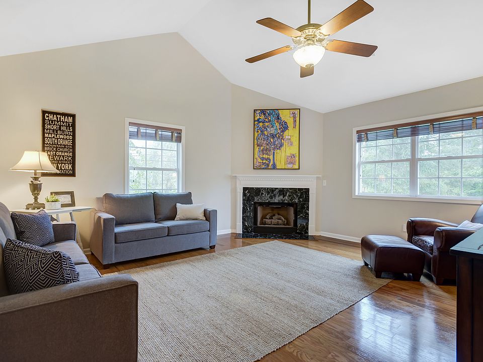 Enjoy carefree living in this sunny & spacious end unit with 2 bedrooms, 2.5 baths, loft with den/office in the highly desirable Moore Estates perfectly located close to NYC trains & highways! A commuters dream, this condo is spacious with hardwood floors, a family room with vaulted ceilings, a dining room & large eat-in kitchen that opens to a private deck perfect for grilling & relaxing outside. A master suite with full bath & walk-in closet, laundry room & half bath complete this level. Upstairs a loft, private bedroom, full bath & den or office complete this floor. Numerous updates include a new furnace, A/C, dishwasher, fridge, security system & more. Enjoy the pool, tennis courts, club house & exercise room & direct access to Loantaka trails. All of this just minutes from Madison & Morristown!