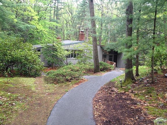 Unique opportunity to own a treasured property surrounded by the 7th and 8th holes of the Weston Golf Club. This classic 50s mid-century modern home with walls of windows overlooking bucolic Meadowbrook is nestled among magnificent rock outcroppings and rhododendrons. Existing home, if you prefer to expand, is ready for your personal updating, as it retains many features of its original era. The opportunity to create your dream home is open to a wealth of possibilities. The site is already equipped with a 5-bedroom septic installed in 2012, with architect plans for a larger build. The house and detached 2-car garage with workshop sit on 2.56 acres of privacy in this unparalleled, unique sanctuary, just 15 miles from Boston.