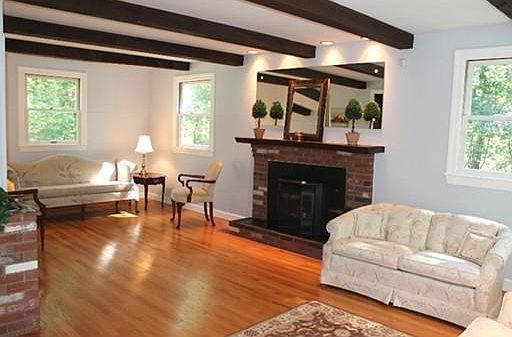 Expanded Colonial in a peaceful neighborhood! Privately tucked back from the road and surrounded by gorgeous mature trees. Stunning views from all rooms in this home, making you feel as if you are in New Hampshire. Beautiful hardwood floors throughout. Spacious and inviting home with cozy fireplaces in both the living room and family room. In the heart of this home is the kitchen with double wall ovens, center island with seating and triple window for gazing out at private level, back yard. Formal dining room ready for your Thanksgiving Feast :). Home office and a bonus bedroom on main level. Four bedrooms upstairs with "His and Hers" closets in the Master Bedroom. Exceptional storage in the full unfinished basement with two fireplaces and plumbed for future bath. Two car attached garage, level backyard for entertaining and playing. Two NEW gas furnaces and Central A/C!