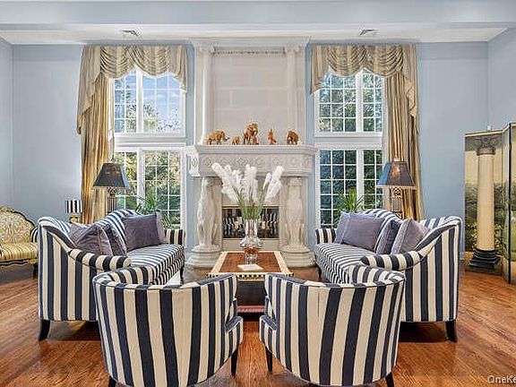 Elegant Upper Brookville Colonial on Two Lush Acres Nestled in the heart of Long Island’s famed Gold Coast, this stately brick colonial in the Incorporated Village of Upper Brookville offers a timeless blend of sophistication, privacy, and modern comfort. Situated on two flat, beautifully landscaped acres, the home is approached through impressive electric gates, opening to manicured grounds filled with mature trees and specimen plantings. Step inside the two-story reception hall, where a sweeping staircase, fireplace, and radiantly heated floors create a grand yet inviting first impression. Sunlight floods through oversized windows, illuminating the home’s exquisite architectural details and refined finishes throughout. The formal living room, featuring a magnificent fireplace, and the elegant dining room set the stage for effortless entertaining. The gourmet kitchen is a chef’s dream—equipped with expansive counter space, generous cabinetry, a large center island, a butler’s pantry, and a sunlit breakfast area overlooking a charming cobblestone courtyard, perfect for al fresco dining. The first floor also includes a two-story library with fireplace, a spacious family room with a fireplace, and three bedrooms accompanied by three and a half baths—ideal for guests or multi-generational living. Upstairs, the primary suite offers a serene retreat with exceptional closets, a spa-inspired en-suite bath, and its own private laundry area. An additional bedroom, full bath, and office complete the upper level. Combining elegance and comfort, this Upper Brookville residence embodies the best of Gold Coast living—an extraordinary home in an exceptional location.