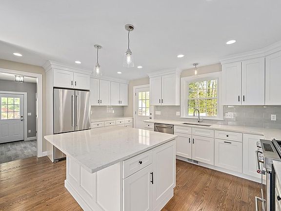OFFER ACCEPTED WITH KICK-OUT CLAUSE. Continuing to show this beautiful home in Braintree Highlands, New Construction!! 8 room Colonial, 3 bedrooms, 2 1/2 baths, w/finished basement bonus room. High Quality Construction: Large open floor plan with HW floors throughout. Beautiful kitchen: white shaker cabinets, quartz counters, SS appliances. Side mudroom entrance; 1st floor 1/2 bath and 1st floor office. Master bedroom boasts HW floors, large walk in closet; master bath w/ custom tiled step in shower; quartz counter on vanity. FHA gas heat and central AC throughout w/ 2 zones, Harvey windows, vinyl siding, 30 yr Arch roof, Professional interior finishes, gas fireplace w/ custom wood mantel, custom interior painting. Attached storage garage, paved driveway, new front walk and large newly landscaped fenced in yard. Close to Boston, commuter rail, T, shopping and more. Walk to Highlands Elementary School! Everything you could ask for with a 1 year new home warranty.