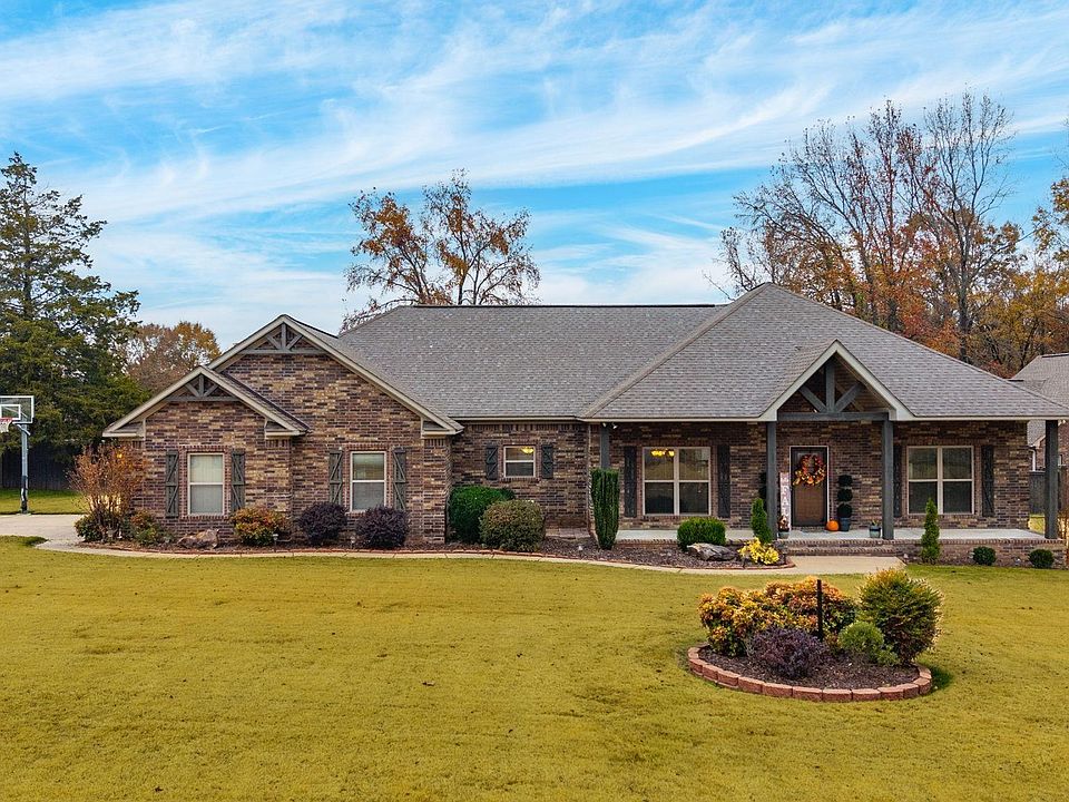 Showstopper home on 2 Acres with inground pool and Guest House in Sought-After Springhill Valley Estates. Discover this extraordinary property nestled on 2 private acres. This beautifully crafted home offers exceptional indoor-outdoor living, complete with inground pool, additional 2 car garage and 509 sq feet guest house not included in the main the main house square footage. Step inside to find hand-scraped wood floors throughout the main living areas, with carpet in guest bedrooms and tile in wet areas. The spacious floor plan includes large living room with a gas fireplace, dining room, and a bright eat-in kitchen featuring granite countertops, a breakfast bar, pantry, and stainless steel appliances including an electric cooktop. The luxury primary suite offers the perfect retreat with a jet tub, custom shower, dual sinks, dual closets (His and Hers). Outside, the amenities continue with large covered back porch, extra patio off the guest house perfect for entertaining. This property is truly has it all- space privacy, craftsmanship, and resort style living.