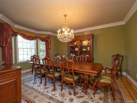 Stepping inside, experience the natural light and space of the double height foyer which introduces the gracious living room and banquet sized formal dining room. Informal spaces are anchored by the cook’s kitchen boasting custom cabinetry, stainless steel appliances and new quartz countertops. Warmed by a wood burning fireplace, the adjoining family room and cozy dining nook overlook and have access to the outdoor patio and verdant yard. A fifth ensuite bedroom, a laundry center, a powder room and access to the attached three car garage complete this level. Second floor living quarters, accessible from main or back staircases, feature a spacious primary bedroom with ensuite bath and walk- in closet in addition to three additional bedrooms with ample closets and a full hall bathroom. A finished lower level adds recreational space and wonderful storage.