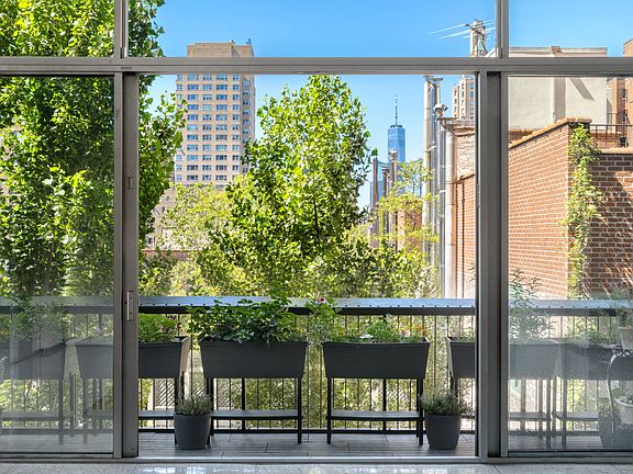Soaring 11'8" ceilings throughout are complemented by expansive windows facing south and north that flood the space with air and natural light. Currently configured as a 4 bedroom with 2 home offices and 3-1/2 bathrooms, Residence 6 provides unparalleled comfort and versatility. Entertaining is exceptional in the amazing 80 foot long great room with gallery, graced by tall beamed ceilings and a wall of glass with doors leading out to the large southern terrace. Both this terrace, and the private terrace off the master suite overlook the serene townhouse gardens of landmarked Greenwich Village blocks and cityscapes reaching down to One World Trade Center. A formal dining room, brand new eat-in chefs kitchen, spacious master suite with a private bath + sauna and huge walk-in closet are among the other highlights.