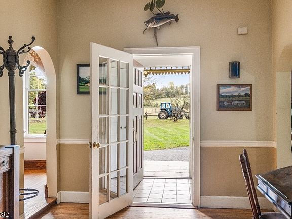Step into history at Buck Hill Farm, a charming 1788 farmhouse set on approximately 115 acres across four parcels three farmland-preserved. This 3,200-square-foot estate exudes genuine country warmth everywhere you turn, offering a serene retreat just 4 miles from Route 80 and roughly 70 miles from New York City. The first floor welcomes you with a wide entry flowing to the dining room and kitchen with the original hearth on one side, and an enormous living room with two fireplaces and a custom built-in library on the other. Upstairs, four bedrooms, a full bath, and a versatile room adjacent to the primary suite perfect as an office, dressing room, or walk-in closet are complemented by wide plank pumpkin pine floors, six decorative fireplaces, tall ceilings, oversized windows, and enduring doors, trim, and woodwork. Generously proportioned hallways enhance the home's flow and frame 360-degree views of rolling pastures, woodlands, and two tranquil ponds. The grounds feature a barn, run-in livestock buildings, a silo, a two-story stone outbuilding reminiscent of a storybook playhouse, a garden, chicken coop, pasture fencing, and a stone staircase to a stream with a private dock. Historically home to longhorns, pigs, chickens, and many crops, Buck Hill Farm is ideally suited to be a working farm while still offering a peaceful country sanctuary. More than a home, Buck Hill Farm is a lifestyle a rare combination of rustic heritage, natural beauty, and limitless possibility.