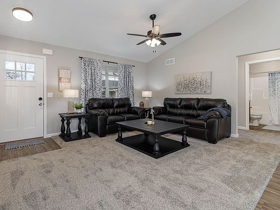 The living room is a part of the contemporary open floor plan. See what the chef is up to, help them set the table, or unwind on the cozy sofa with a good book.