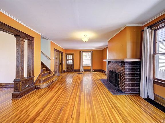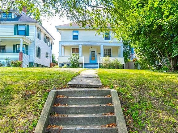 This stately colonial perched above the street has so much amazing interior space. From the original hardwood floors, to the original woodworking and crystal door knobs, it will bring you back in time. Located directly across the street from Eastman Park where the weekends have BBQ's and people gather to enjoy this Park area. Offering 4 spacious bedrooms this home has so much room. Enter through the original solid wood front door into your amazing oversized living room w/ original woodworking, brick fireplace and tall ceilings. The formal dining room is just off the living room and kitchen. Step out back onto your quaint screened in back porch which leads into your private yard. At the back of the property sits a 1 car detached garage. So very close to the Hospital and all major roadways makes this a great find.