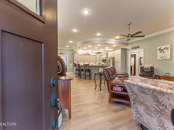 ''Welcome Home'' This 1991 sq ft Craftsmen Ronnie Wyatt Built home lovingly designed with 10 ft ceilings in kitchen area; recessed lighting; open concept with no negative space within the design; custom blown glass pendants over the breakfast bar; quartz counters; wood flooring throughout; gas stove/oven; plenty of baking and cooking areas; a custom curved kitchen ceiling designating the kitchen area; the master suite speaks of space with its spaciousness; master bathroom boasts a 'Roman' walk in shower accented with 2 shower heads; a 'Command Center' for private 'thinking'; a custom designed walk in closet; and crown molding throughout. Walking into the sunroom off of the kitchen has large windows flowing in the light and airy feel of nature. The front porch and back porch ceilings are tongue and groove wood. The garage is oversized with a workshop area and has 2 single car garage spaces. All cement in garage, driveway, porch, and sidewalks are custom colored chocolate. 'Come On Home' Buyer to verify information before making an informed offer.