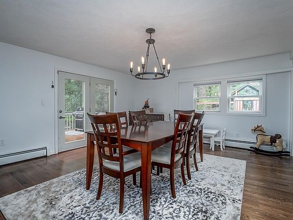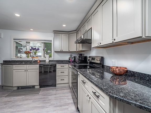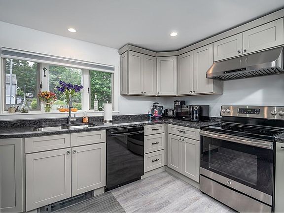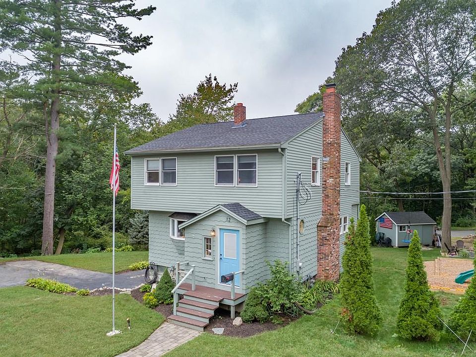 Welcome home to 12 Edgemere Road! Located just 2 miles to MARKET STREET ! This beautifully maintained home features a brand NEW custom kitchen, granite counters, and stainless steel appliances. The living room/dining room combo features new hardwood flooring, custom lighting and a wood burning fireplace. Off the dining room, enjoy your wood deck and private backyard that abuts Cedarwood Road which is a dead end street. The fire pit is a great place to take in the outdoors! Additional updates include: interior paint, two new entry doors, carpet in bedrooms, hot water tank, 200 amp electrical service, updated bathroom with pedestal sink. Close to Huckleberry Hill Elementary School and only 15 miles to Boston. Easy to show!