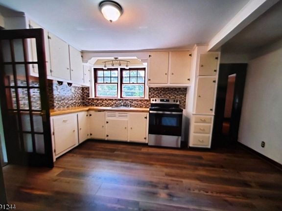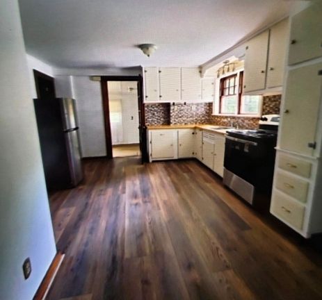 Kitchen with new appliancesHard wood floorsWasher and dryerDining room