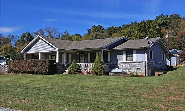 Home has curb appeal and one-level living. Located on .54 ac level corner lot in Ratcliff Cove. Mountain view from covered front porch. Home offers open floor plan, split bedrooms, over-sized one-car garage, kitchen island, large master, and huge covered patio (14 x 34), city water, but outside city limits, storage shed, and well-maintained lawn. Fresh paint and mostly new flooring.