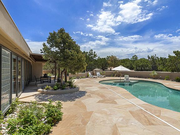 Looking for a private setting with gorgeous views and huge sunsets only 20 minutes to downtown Santa Fe? This home with 10 acres boasts huge western views from your private pool and backyard paradise. Recently remodeled, the property has a 3 bedroom 3 bath main house plus a studio / casita with kitchenette, full bath and separate outdoor space. There are high ceilings and beautiful tile floors. The master suite features a spa like bathroom and direct access to the pool. Come make this your personal retreat from the world.