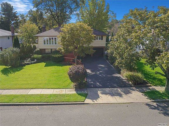 Magnificent expanded wide line high ranch midblock location in Commack Schools. House is on treelined street with sidewalks, large expanded blacktop driveway, six year young roof, beautiful flat lot. Open floor plan, hardwood floors, custom moulding & wainscoting, large kitchen with white cabinets, stainless steel fridge, recessed lighting & lots of cabinet and counter space. Hallway bath with floor to ceiling tile and tub, granite vanity, enormous master with ceiling fan. full bath with glass shower. Tremendous den with brick fireplace, slider to yard. Two car attached garage, four year young gas boiler