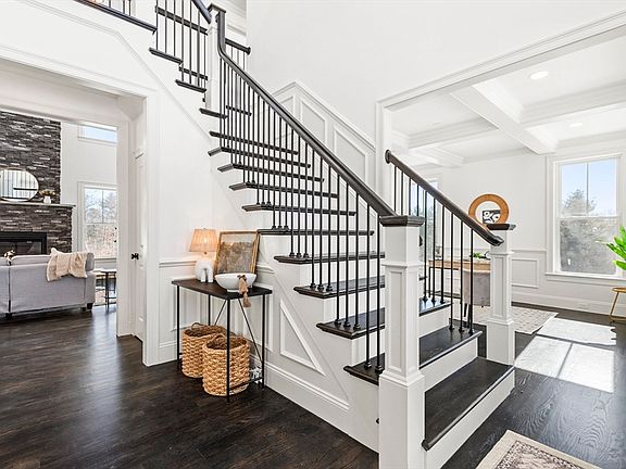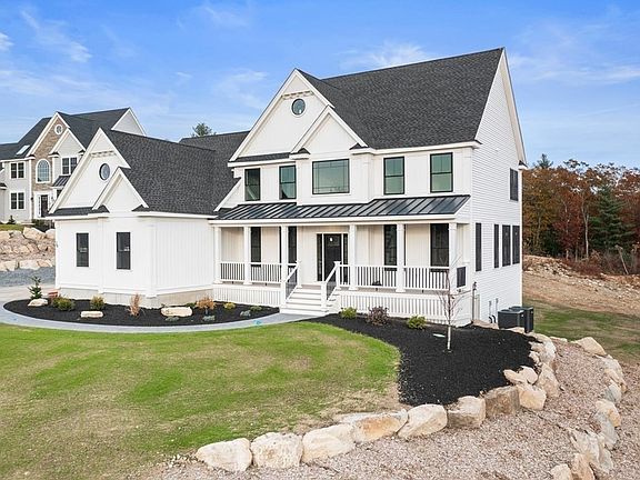 Amberfields Estates welcomes: 24 Field Circle. This custom farmhouse-inspired colonial is COMPLETE and ready for its new owner! At 3,452 square feet, you will immediately capture the attention to detail with this home’s finishes, custom moldings with vaulted/coffered ceilings, and grand scale spaces. The 2-story great room is centered with a floor to ceiling stone gas fireplace, along side of the large custom kitchen suited with calacatta countertops with an abundance of cabinetry. The 2nd level offers 4 bedrooms and 3 full bathrooms, whilst the primary suite also features a large walk-in closet with custom built in shelving. Complimented by the vaulted ceilings & exposed beams in the primary suite, you will also find the its luxurious bathroom with a soaking tub and tiled-shower nothing shy of grand.