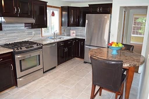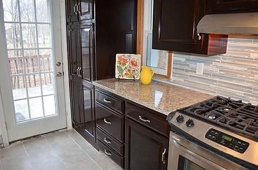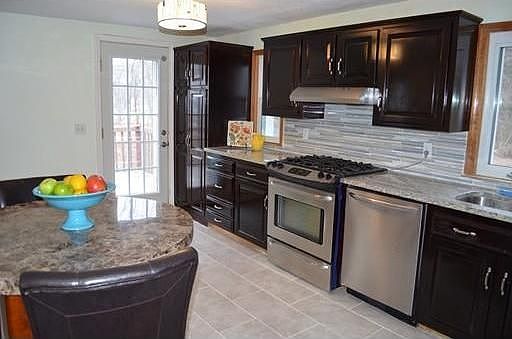 Bright, spacious, renovated Cape: Downstairs is a large living room with a beautiful fireplace as a centerpiece, and windows surround you with natural light. Overlooking the backyard is the remodeled kitchen with gorgeous tile flooring, stainless steel appliances, and granite counters. In the backyard you will find a large stone patio, perfect for entertaining. A trellis with concord grapes leads up a path to your cozy firepit. In addition to the full bathroom, there are 2 more bedrooms downstairs. Upstairs you find a Chic 2015 bathroom, with a large shower stall. Master Bedroom with a ...walk-in closet, and a 4th bedroom. With energy efficient windows and new doors throughout, an upgraded Buderus Boiler, and a brand-new lifetime metal roof... move right in and enjoy!