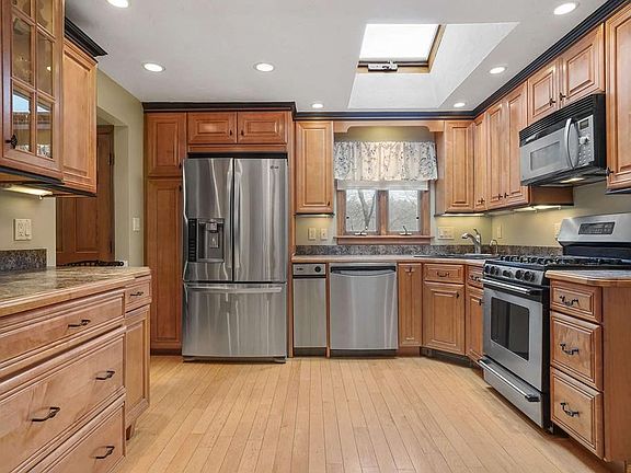 OH Fri (12-1) & Sat/Sun (12-2). Less than 10 miles to Boston and a half mile from public transportation, this well-kept split offers a neighborhood experience and an easy commute. Walk in to a generously sized living room featuring cathedral ceilings and continue to the open concept dining room and kitchen. The kitchen offers plenty of storage with full-height cabinets, double-wide drawers, and ample counter space. Recessed lighting and a skylight give you great light to prepare and entertain. Continuing on the 1st floor, the master bedroom boasts double closets and a slider to your tri-level deck for a bright, airy feel. A 2nd bedroom and a freshly grouted full bath finish this 1st level. The lower level features a family room with a gas fireplace adjacent to a mudroom/laundry area which is a full walk-out to your driveway. Another full bath and third bedroom complete the lower level. 2019 deck painted, 2019 Fredrick AC, 2018 interior painted, 2017 front patio. Built in 1984.