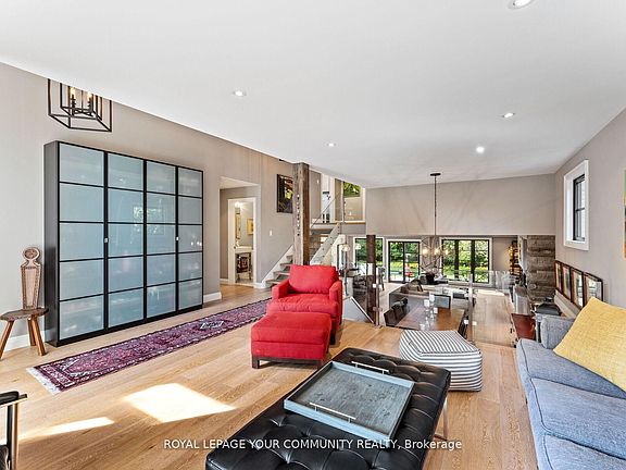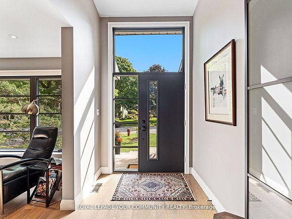 Tucked away on a quiet tree-lined street, this bright and spacious modern backsplit blends luxury and comfort in every detail. Truly unique and unassuming, rebuilt top to bottom, it's filled with natural light and features soaring ceilings, a striking floating staircase, and a chef's kitchen with an 11-ft island, marble backsplash, and top-tier appliances. The open layout flows effortlessly to a cozy family room with wood-burning fireplace and walkout to a year-round, private, pool sized backyard - your own hidden oasis. Two bedrooms up, including a luxe primary suite with ensuite & W/I closet, plus main-floor office/3rd bedroom. Finished lower level with rec room, Murphy bed, 2 PC bath & spacious laundry. Direct access from the 2-car garage plus plenty of storage spaces throughout.