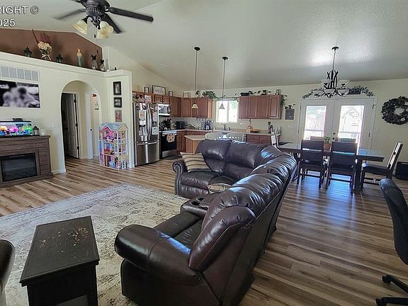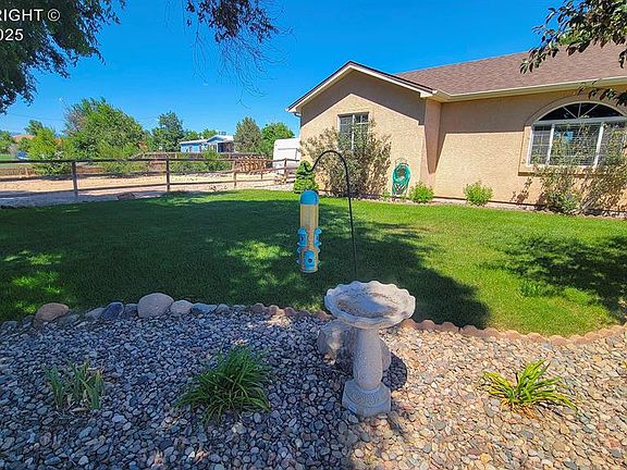 Home sweet home! A perfect home that has a little bit of everything for you and yours! This 3 bedroom, 2 bathroom home is better than new and shows it when you first walk in. Split-bedroom design with large rooms and vaulted ceilings. Master bedroom with full bath en-suite boasting marble surround and double closets. Beautiful vinyl flooring and 2 panel doors, large central living room and kitchen with island and stainless appliances included in sale. On-demand hot water system, central air conditioning and more. Gorgeous landscape with grass on timed sprinkler system, shade trees, fenced back yard and separate dog run. Large back patio and private ambiance. More space for secure storage or parking on this .47-acre lot. Separate sheds and structures for extra storage. This is a great property in an even better location that is quiet and private, yet close to school and highway for easy access to Pueblo and Colorado Springs. See the virtual tour to fall in love with this home and make it yours before the next buyer beats you to it.