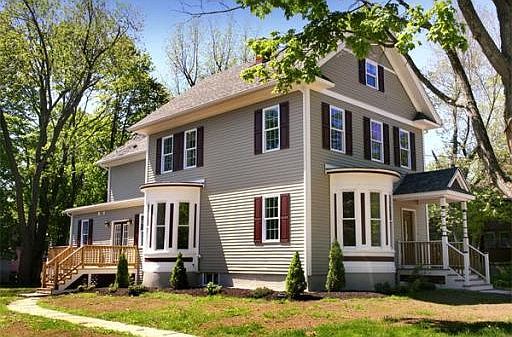 Hip yet stylish version of 1856 charmer ! 2012. "Wow" kitchen and baths! Stunning new vision of history perfectly blending with everything you need to enjoy all the seasons. Incredible location 5 min to the Merrimac for a bike ride, 3 min to Donahue School and 2 min to church. Custom Granite and SS kitchen fully applianced! 9'+ceilings, curved windows, built-ins, 2 decks, HW floors and much more! Walk to a kayak Ride on the Merrimac River!