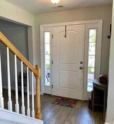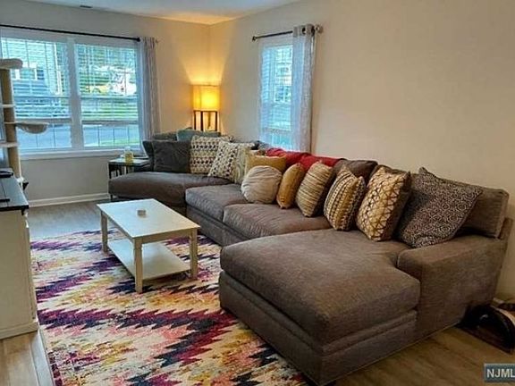 Lovely end unit, with lots of windows and natural. Open kitchen dining with glass doors leading to patio and open outdoor space. Large primary bedroom with full bath, and balcony! 2 bedrooms, full bath, and laundry on second floor. Plenty of closets and storage. Upgrades include: kitchen cabinets, wood flooring throughout first floor, carpet on stairs and second floor, electric garage opener, and washer dryer included. This unit is like new. Own this beautiful townhouse in Clayton Square without the wait to build!