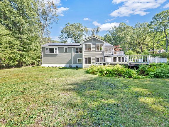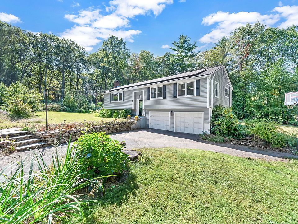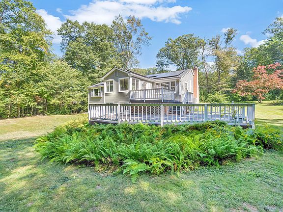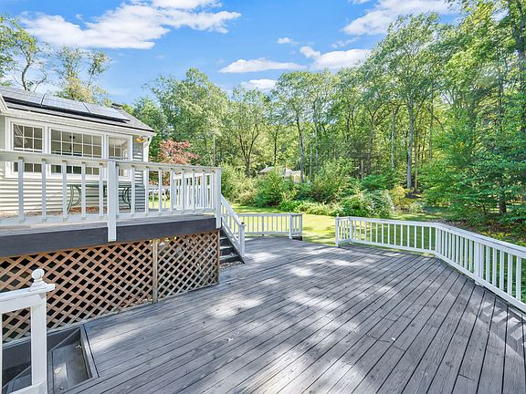 Welcome to 12 Gretel Lane - a beautifully maintained Raised Ranch in one of Simsbury's most desirable neighborhoods. With over 2,400 sq ft of living space on a quiet 1.18-acre corner lot, this home is just a short walk from Squadron Line Elementary School. Inside, enjoy a sun-filled 30' x 14' living room with a cozy fireplace, a stylish kitchen with stainless steel appliances, white cabinetry, breakfast bar, and custom pantry, plus a formal dining room perfect for entertaining. The main level offers four spacious bedrooms, including a private primary suite, and a recently renovated full bath. Downstairs features a private den with hardwood floors and beadboard ceiling-ideal for a home office-alongside a large, finished area with built-ins for flexible use. The unfinished portion includes a 2-car garage with ample storage and workspace for hobbyists or handymen. Step outside to a sprawling multi-level deck overlooking a generous backyard-perfect for relaxing or hosting guests. The roof and expansive solar system (installed just 2 years ago) work seamlessly with the electric heat pump and high-efficiency water heater, producing surplus electricity for most of the year. A low-interest, transferable loan covers the solar system and roof.