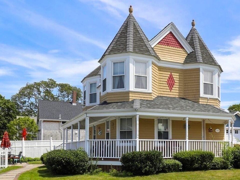 Victorian charm with modern interior, open floor plan downstairs for entertaining or family time. Vast closet space. A short stroll to pickleball courts, shops, restaurants, marina, Point Independence Yacht Club, Cape Cod Canal cruises, community bandstand, town boat ramp and Onset Beach. The driveway has two off-street parking spots (rare for the area). Sip your morning coffee or enjoy sunset cocktails on the inviting wraparound porch. The kitchen and living areas are bright and airy, with large windows that showcase the beautiful surrounding community. The first floor has one bedroom and a full bath with a clawfoot tub; the second floor includes two bedrooms with ceiling fans and a full bath. Only four houses from a small neighborhood beach. The home's interior boasts coastal-inspired decor, complementing the waterfront setting. Currently operating as a 5-star Airbnb. Great investment opportunity or second home with option to purchase fully furnished and turnkey. New furnace 2025