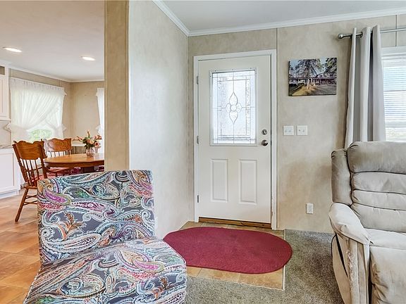 Welcome to 12 Gwyn Lane in West Bloomfield, a perfectly maintained ranch home that offers three bedrooms and two full bathrooms. The front porch with its views of the Bristol Hills welcomes you to the interior of the home. The ample sized living room has a gas fireplace and an open floor plan to the HUGE chef's kitchen w/ a breakfast bar, a ton of counter & cabinet space and dining area. Off the kitchen of the utility room with a washer and dryer. The primary bedroom has its own full bathroom and walk-in closet. There are two more ample sized bedrooms and another full bath. The home offers plenty of storage options with a full walk up attic. Outside you will find a detached two and a half car garage and a patio. Park approval required Northrup MHC LLC is the park's name.