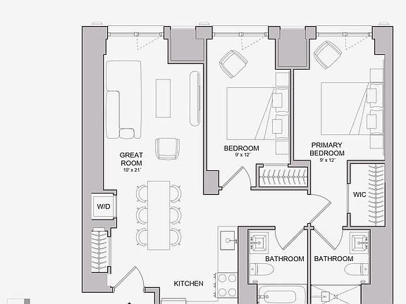 This two bedroom offers a beautifully balanced layout that blends style and function. The expansive great room is perfect for both entertaining and relaxing, seamlessly connected to a modern kitchen designed for cooking and conversation.