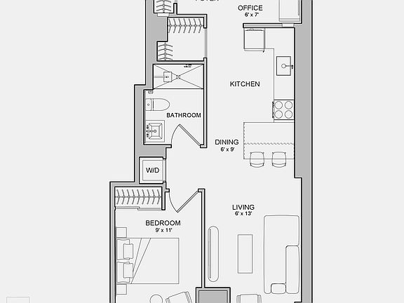 This 1 bedroom combines modern comfort with versatile living. A welcoming foyer opens into a sunlit living area that seamlessly connects to a stylish open kitchen and dining space, creating an inviting flow for both daily life and entertaining.